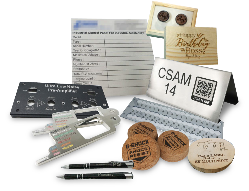We produce permanent marking from graphics, logo, QR code, barcode, scale, trademarks, alpha-numberic, icon and symbols onto various products such as medical equipment, machine panel, automation parts, corporate gifts and many more. Detailed and complex logos are produced with clarity and precision. Laser engraved items and products simply add value and become an up market products.